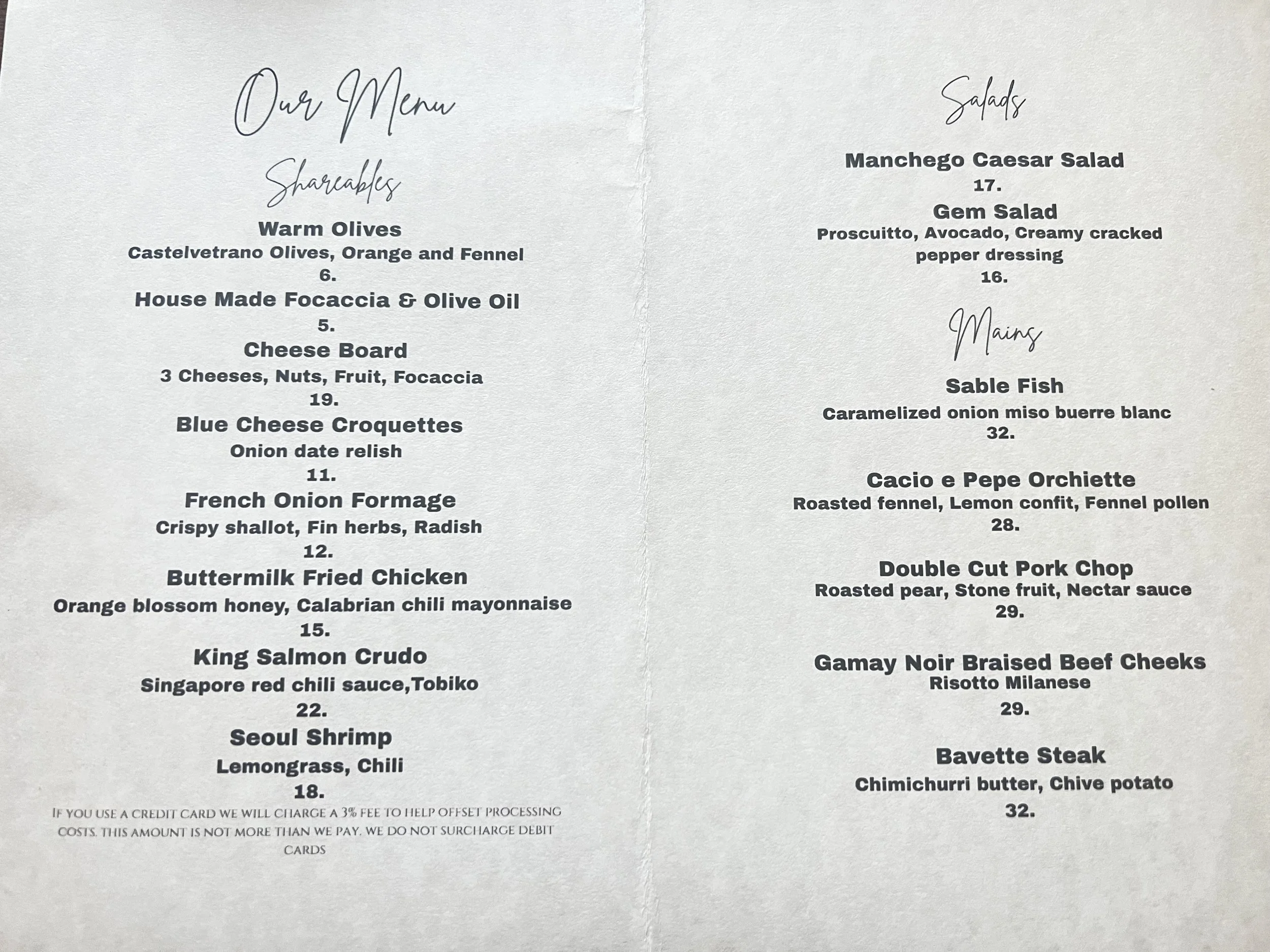 *Menu is subject to change.